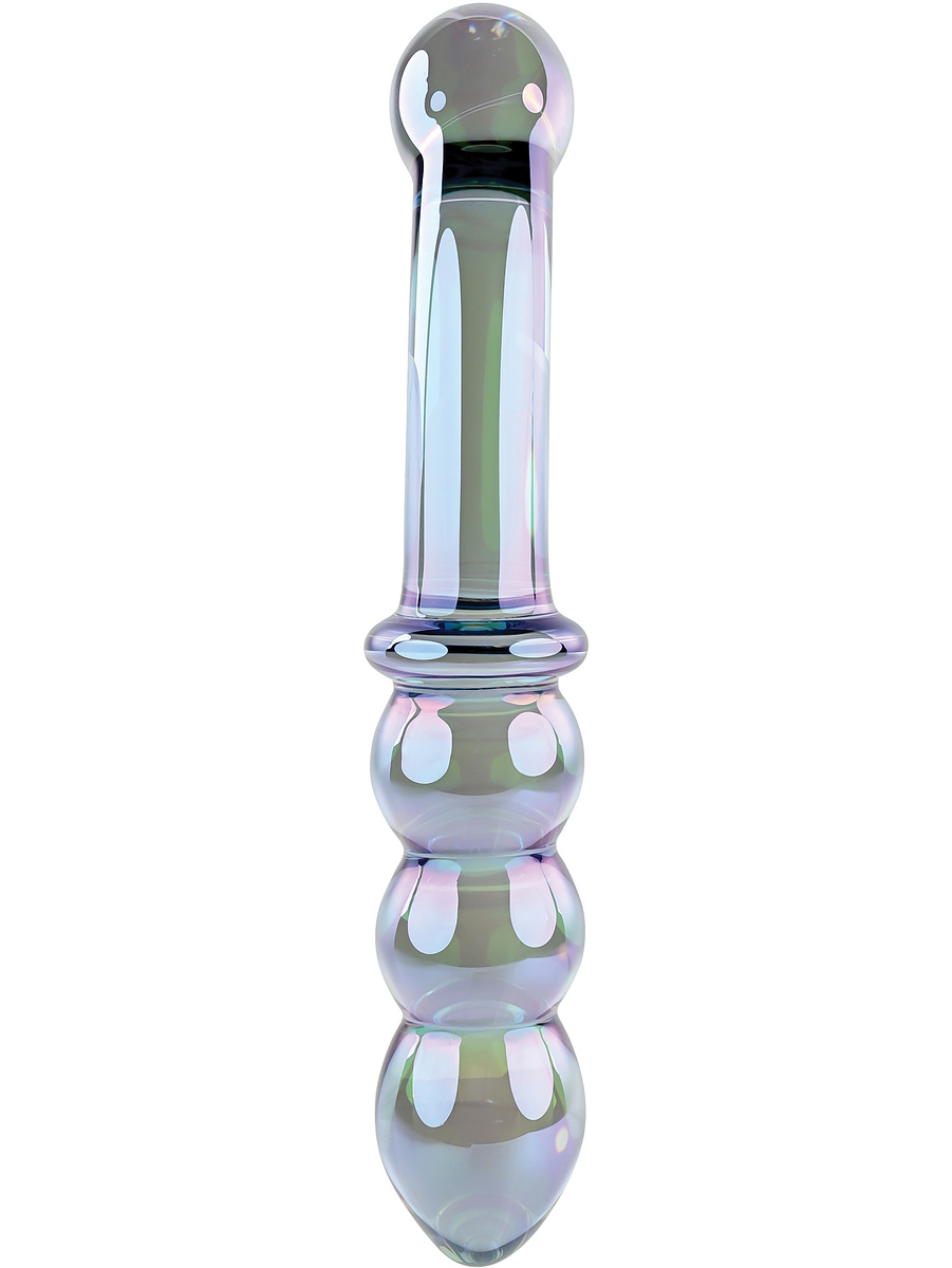 Utforsk den svakt buede enden med en markert spiss som retter seg mot sensitive steder eller nyt den kuleformede enden med den målrettede, avsmalnende spissen. En ring mellom de to endene gir deg full kontroll slik at du kan fokusere på nytelsen som bare glass kan levere.