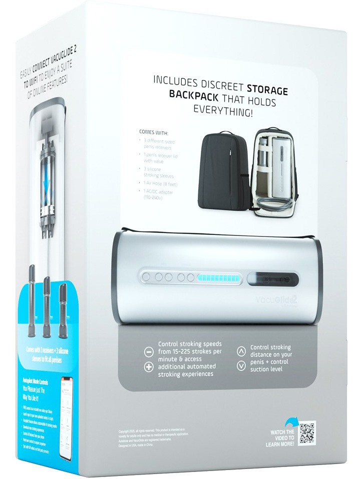 VacuGlide 2 blir ofte beskrevet som Rolls-Roycen blant automatiske onanimaskiner – og med god grunn. Kombinasjonen av kraftig sugekraft, presis stryking, robust konstruksjon og ekstrem tilpasningsevne gjør denne til en av de mest intense masturbatorene på markedet.