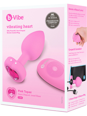 B-Vibe Vibrating Heart, Remote Control Plug, rosa