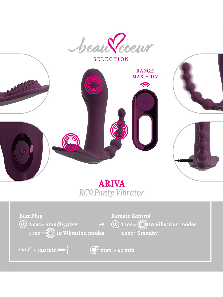 Ønsker du deg et leketøy som kan tas med ut uten at noen merker det? Ariva er en spennende trusevibrator som stimulerer vagina, anus og klitoris samtidig for en komplett opplevelse.