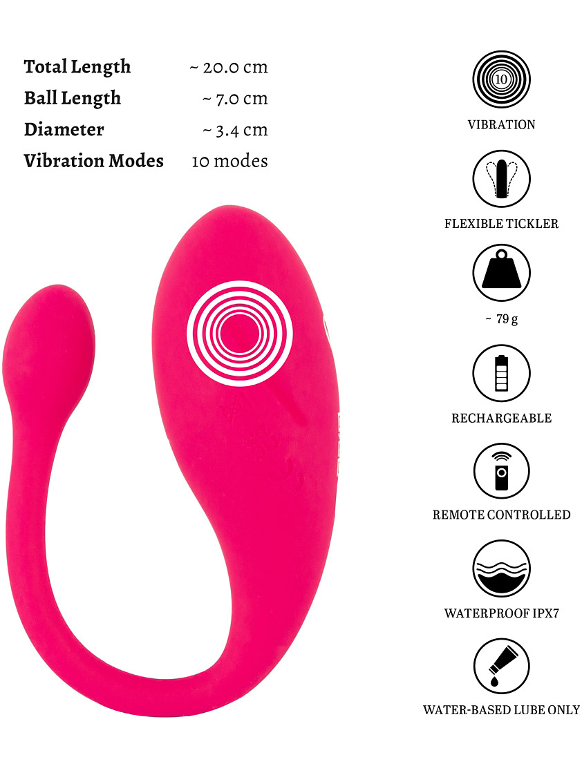 Koral tilbyr 10 forskjellige vibrasjonsmoduser som enkelt styres via fjernkontrollen – eller direkte på leken. Den trådløse kontrollen har en rekkevidde på opptil 8 meter, slik at partneren din kan ta over kontrollen for spennende lek.
