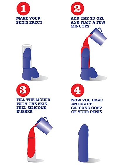 Settet inneholder alt du trenger for å lage en perfekt silikonkopi av penis, alene eller sammen med partneren din. Passer til alle utseende og de fleste størrelser.
