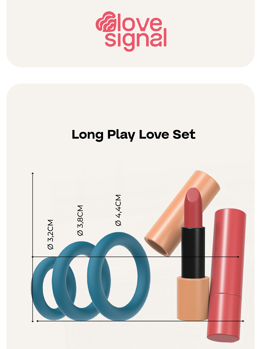 Oppdag nye måter å tilpasse følelse og passform med Long Play Love Set. Dette allsidige settet med penisringer gir deg flere alternativer for å justere trykk, ereksjonsstøtte og stimulering – perfekt for både nysgjerrige utforskere og mer erfarne brukere.