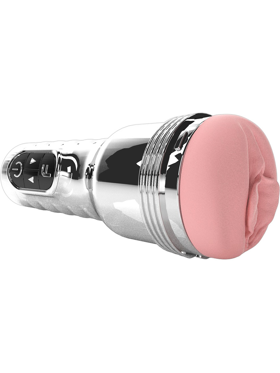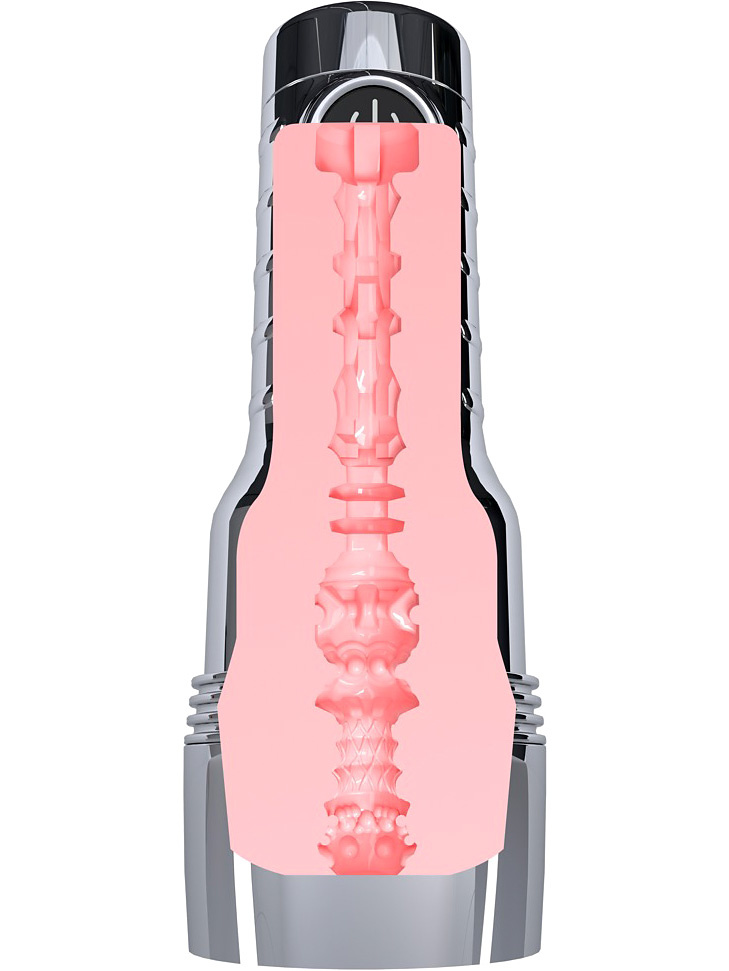 Den rosa sleeven har en ultramyk tekstur og realistisk vaginalåpning, samt en indre struktur som skaper variert friksjon gjennom hele bevegelsen. Alt er plassert i et stilig metallisk kromhus som både beskytter sleeven og gir en førsteklasses følelse i hånden.