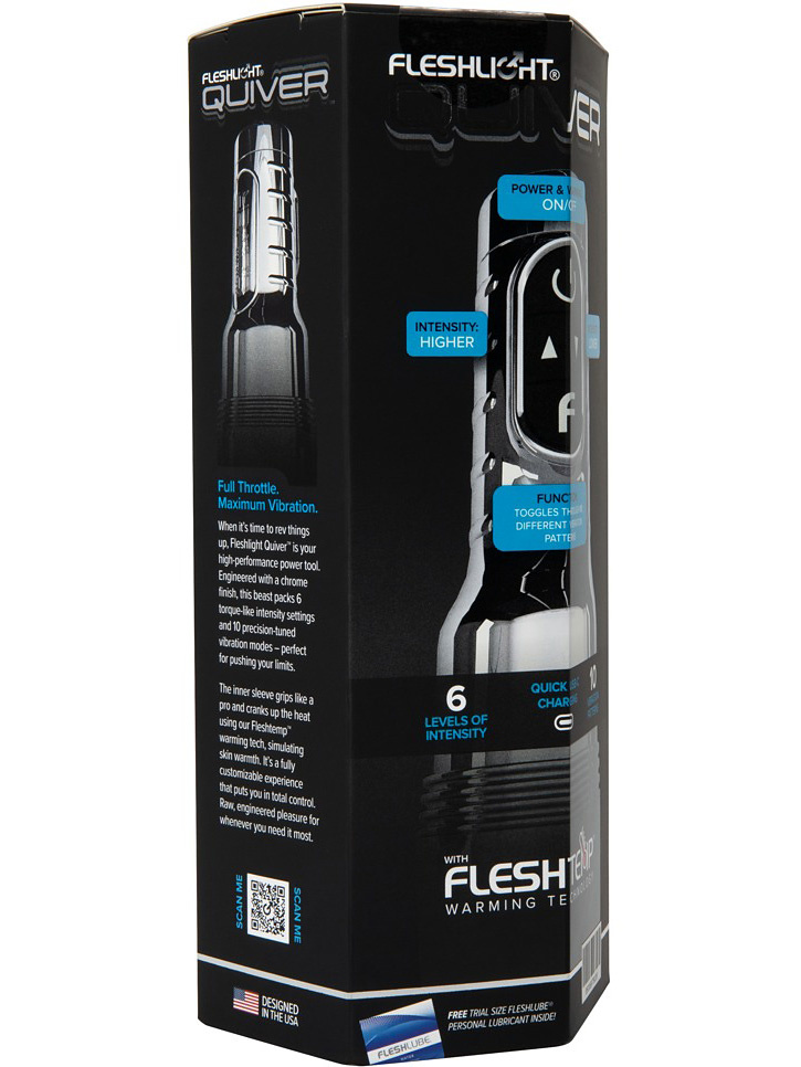 Fleshlight Quiver er designet for de som ønsker å ta opplevelsen sin til neste nivå. Den kombinerer Fleshlights velkjente myke sleeve med kraftige vibrasjoner, justerbar intensitet og en varmefunksjon.