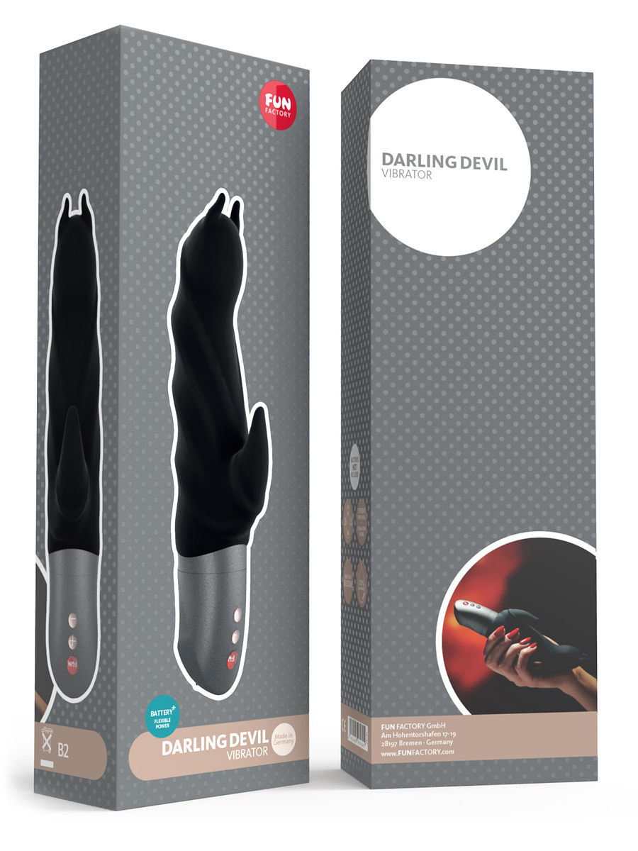 Darling Devil er en del av Fun Factorys BATTERY+–serie og er utstyrt med 4 kraftige hastigheter og 6 intense vibrasjonsmønstre. Dette gir deg et bredt spekter av opplevelser – fra dype, rumlende til raske, pulserende vibrasjoner.