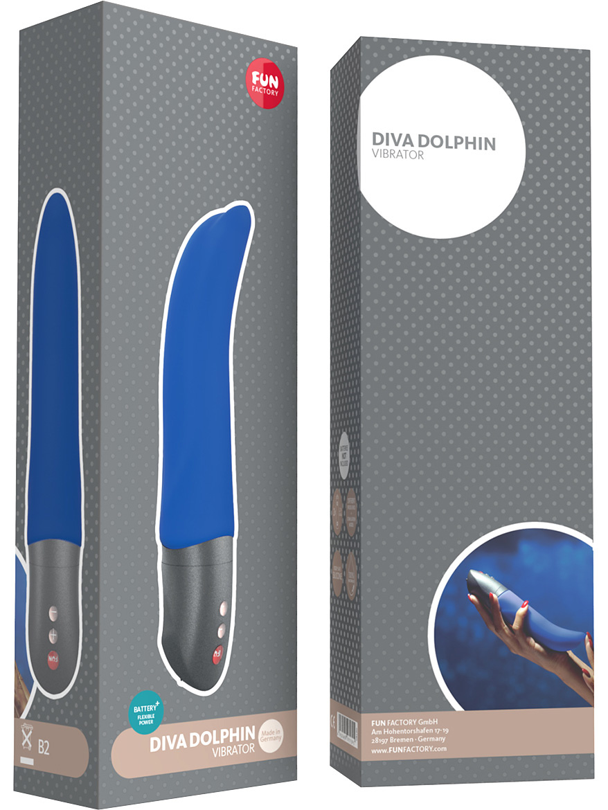 Som en del av Fun Factorys BATTERY+-serie gir Diva Dolphin deg all friheten med batteridrevne leketøy – uten å ofre styrken. Den huser markedets kraftigste batteridrevne motor og kan brukes med både vanlige og oppladbare AAA-batterier (1,5 V).