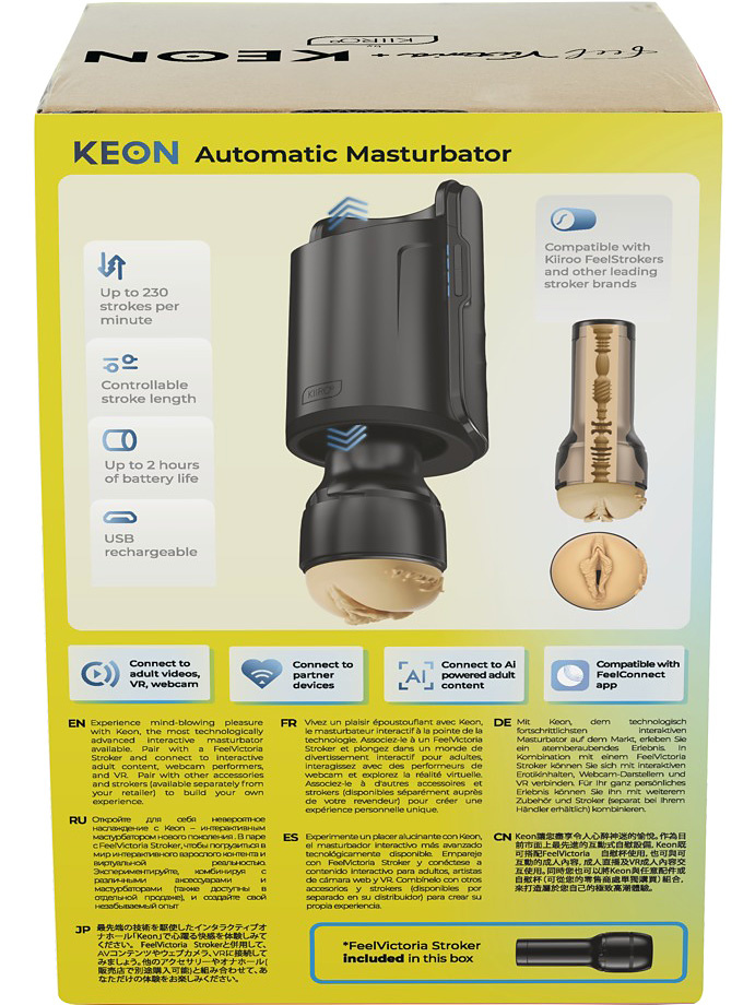 Laget av Kiiroos patenterte RealFeel-materiale – et mykt, hudlignende materiale som gir en utrolig realistisk opplevelse – er FeelVictoria Stroker perfekt skreddersydd for Keon og gir maksimal kontakt og følelse i hver bevegelse.