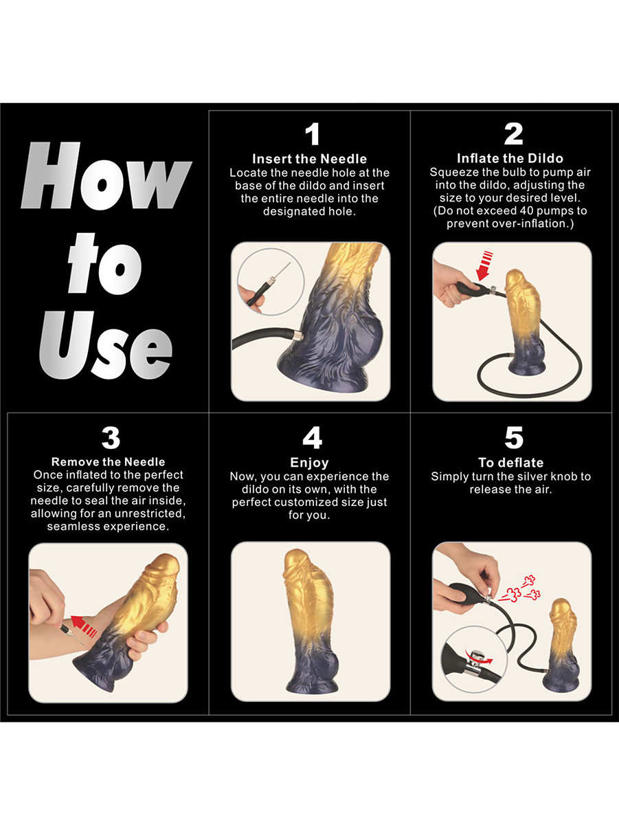 Dildoen er designet for å tilpasse seg deg. Takket være den eksklusive oppblåsbare konstruksjonen kan du selv bestemme størrelse og fasthet.