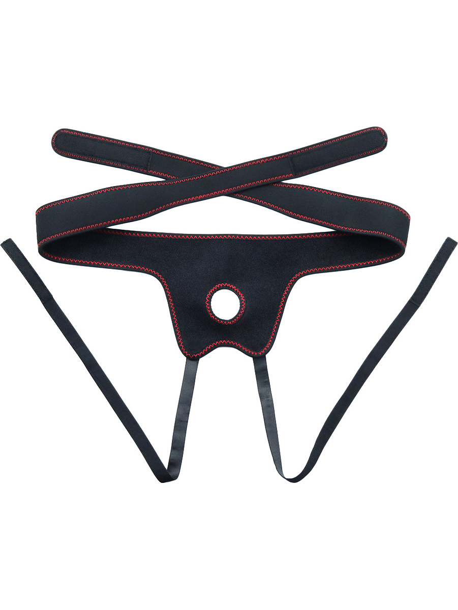 Selen er enkel å ta av og på. Hullet foran på selen har en diameter på ca 3,8 cm men er strekkbart for å passe mange dildoer. Plasser den medfølgende dildoen eller en annen dildo du har hjemme for å utforske spennende penetrasjonsspill.