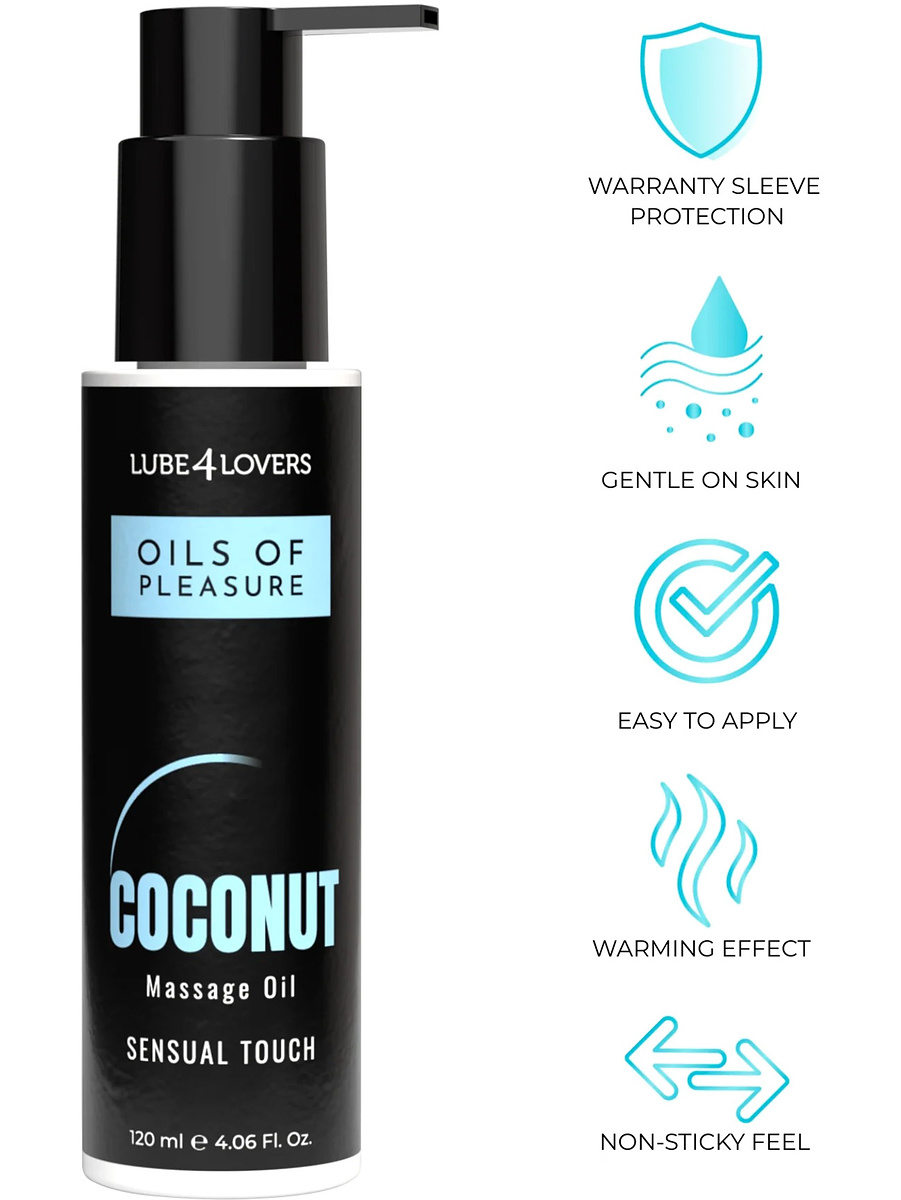 Forvandle hver berøring til en sensuell opplevelse med Oils of Pleasure. Denne luksuriøse massasjeoljen har en eksotisk og varm duft av kokosnøtt som bringer tankene til tropene og avslappende øyeblikk.