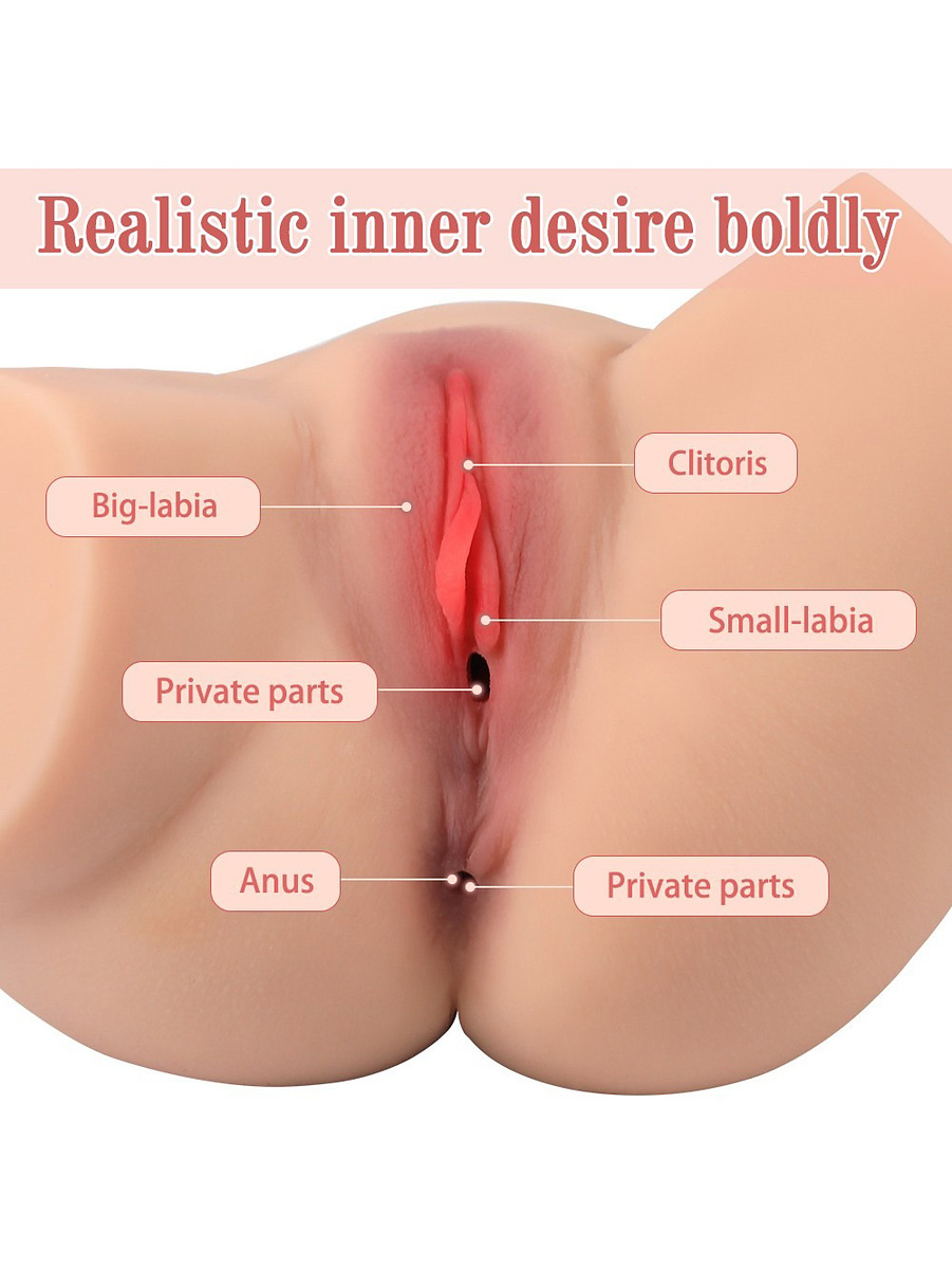 Aiva har to separate åpninger – vaginal og anal – med individuelt utformede indre strukturer som stimulerer langs hele kanalen. Det hudvennlige TPE-materialet føles naturtro og elastisk, og de fyldige formene gir tilfredsstillende motstand i alle vinkler.