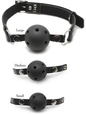 Settet inneholder tre gagballer i forskjellige størrelser – 3,5 cm, 4,1 cm og 4,7 cm i diameter – som gjør det enkelt å starte forsiktig og jobbe deg oppover etter hvert som du blir mer komfortabel. Alle ballene er laget av kroppssikker ABS-plast og er utstyrt med ventilasjonshull som gjør pusten lettere selv under lengre økter.