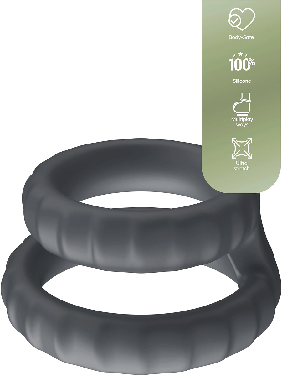 Den smarte doble ringen sitter godt på plass og gir jevnt trykk. Konstruksjonen er designet for å skape en stabil følelse under bruk, mens den fleksible silikonen tilpasser seg kroppen.