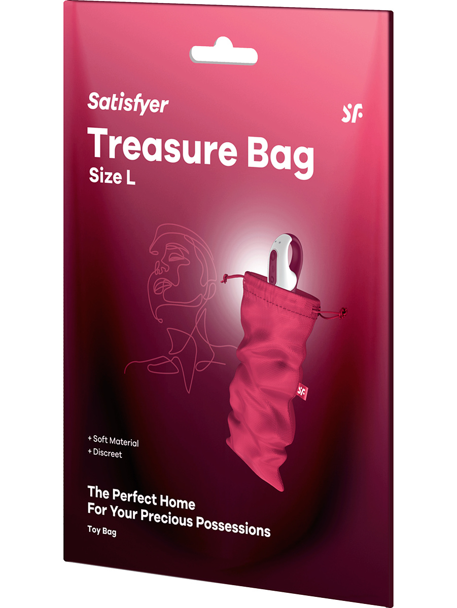 Leter du etter et stilig og trygt sted å oppbevare dine mindre sexleketøy? Treasure Bag i størrelse L er Satisfyers mellomstore oppbevaringspose, perfekt for å holde dine mellomstore leker trygge og diskrete fra andre.