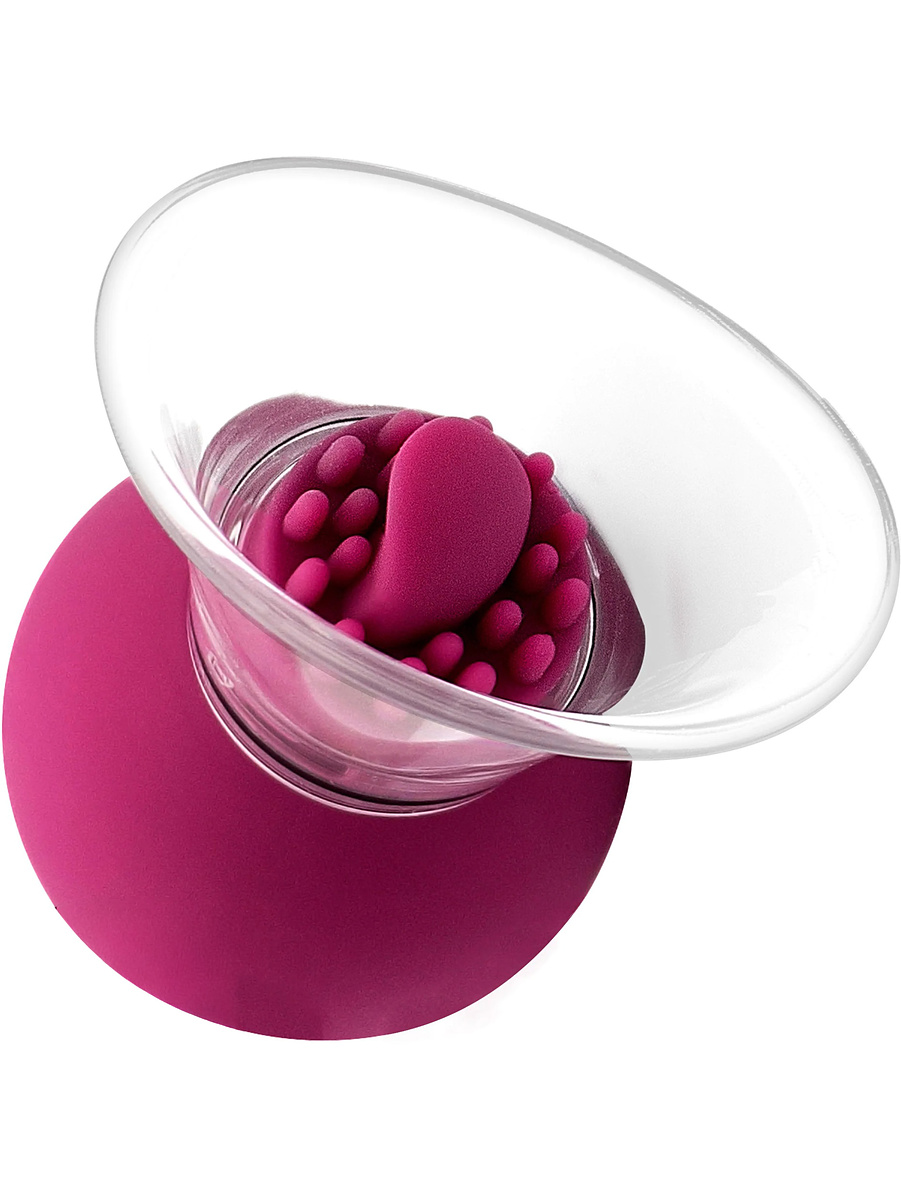 Denne innovative intimpumpen er designet for å gi intens, målrettet nytelse akkurat der du ønsker den. Med to utskiftbare kopper – en for klitoris og en for brystvortene – kan du oppleve variert stimulering som kombinerer suging, rotasjon og vibrasjon i perfekt harmoni.