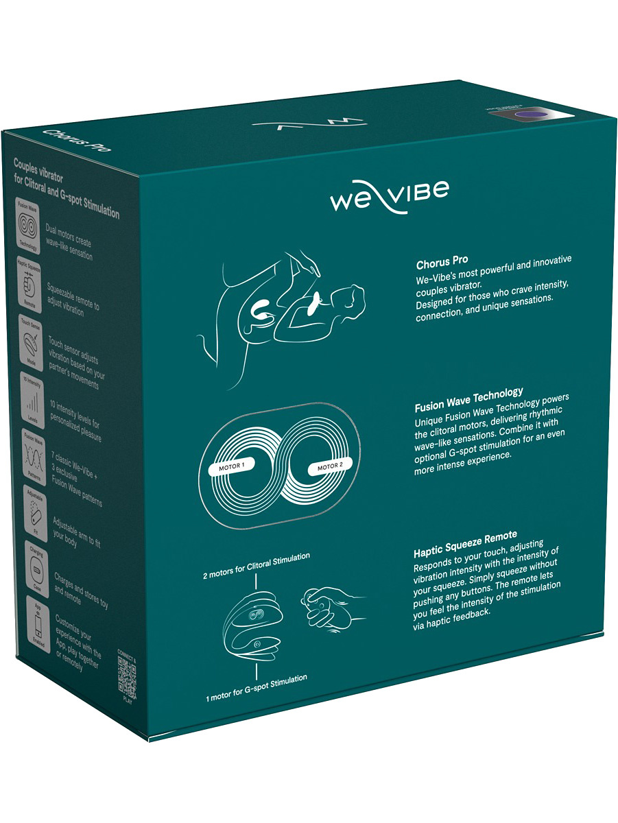 Chorus Pro tar parvibratorer til neste nivå med banebrytende teknologi, forbedret ergonomi, lengre batteritid og kraftigere dobbeltstimulering enn noen tidligere modell. Den er utviklet for par som ønsker presis og tilpasset nytelse – både ved fysisk nærhet og via appstyring på avstand.