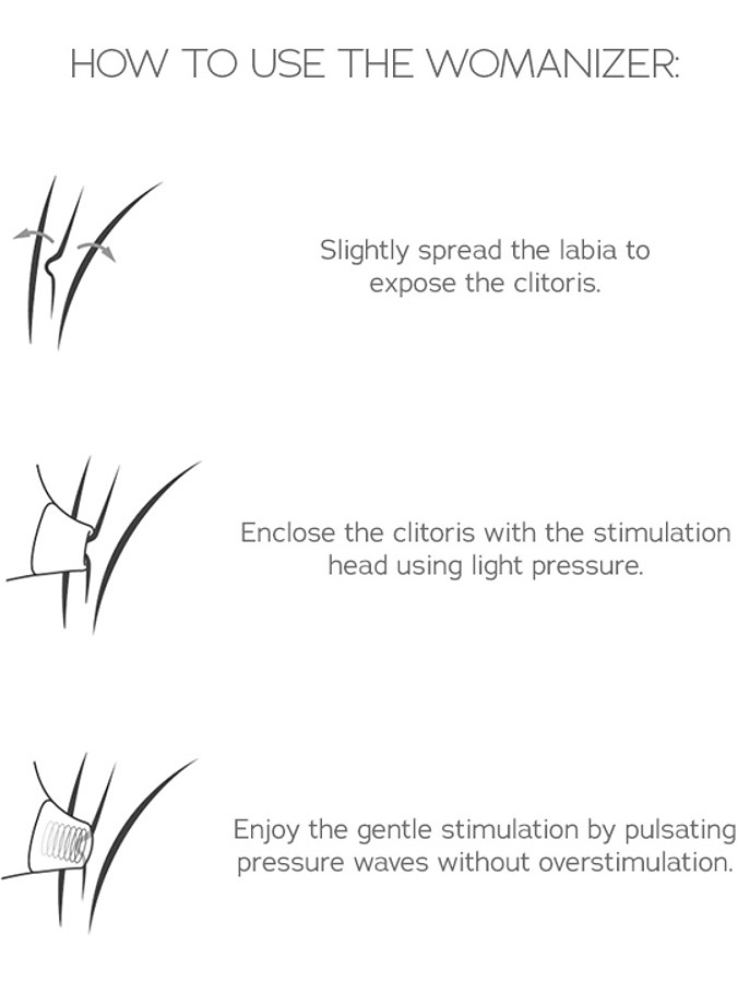 To munnstykker i forskjellige størrelser er inkludert for å sikre at alle kan nyte Womanizeren sin. Den leveres også med en praktisk oppbevaringspose i bomull, magnetisk USB-kabel, bruksanvisning og sikkerhetsinstruksjoner.
