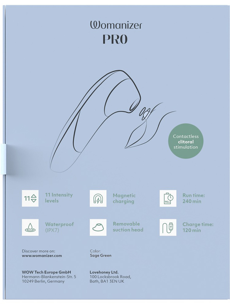 Den kompakte designen og de enkle kontrollene gjør Womanizer Pro til en perfekt modell for de som ønsker å oppdage lufttrykkstimulering for første gang.