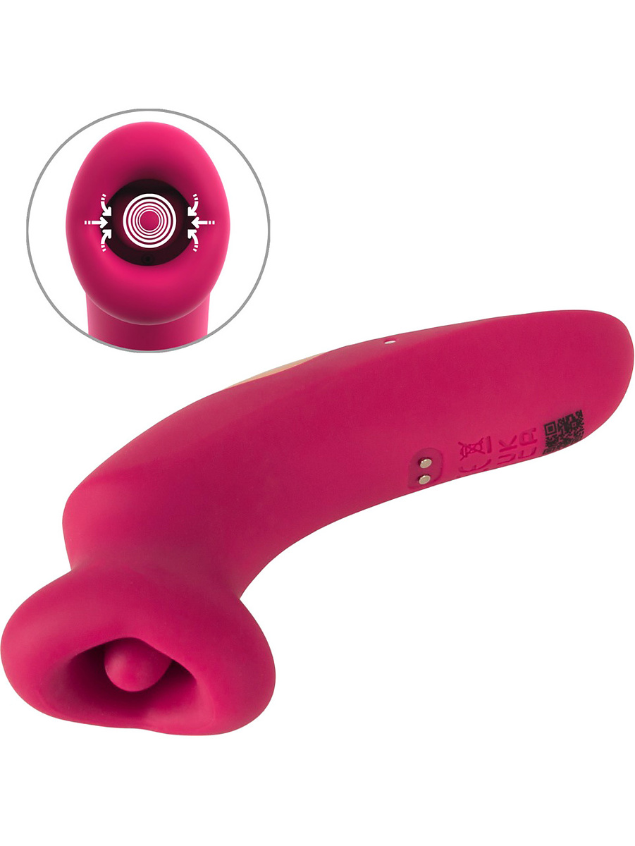 Oral Fun kombinerer suging og vibrasjon i et ergonomisk design som ligger komfortabelt i hånden. De myke silikonleppene omgir sensitive områder og skaper pulserende sugestimulering, mens den vibrerende tungen intensiverer følelsen for en mer intens opplevelse.