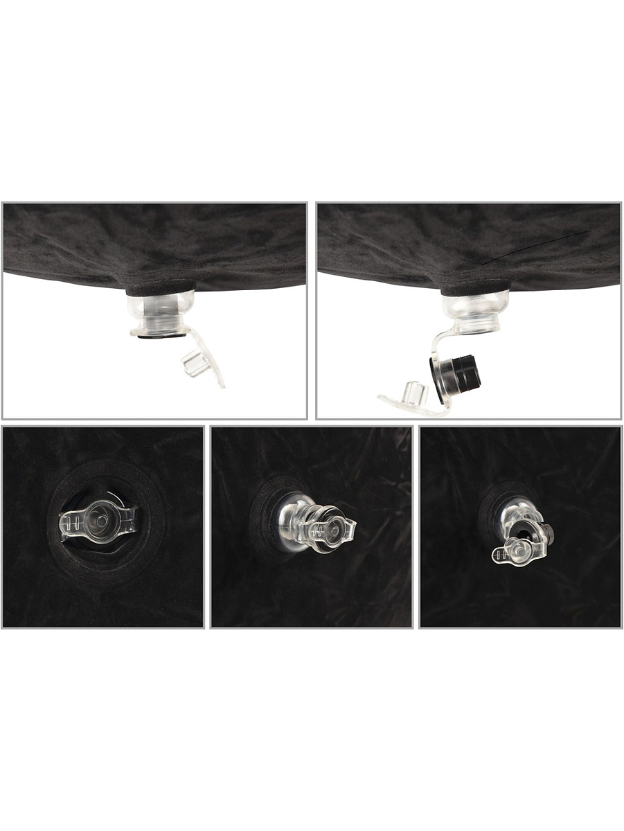 Etter bruk tømmes puten raskt via den ekstra ventilen og kan enkelt brettes sammen til en kompakt størrelse. Overflaten er enkel å rengjøre, og materialet gjør den enkel å bruke om og om igjen.